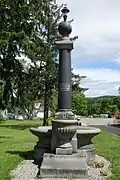 Poured concrete | For people, horses and dogs | The original fountain deteriorated and was used to create a replica. It was erected about 100 ft from the original's site. |