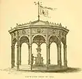 The first of the drinking fountains in Philadelphia may rank among the earliest in the country. Constructed in 1854, it was explicitly labeled "For the public good", it had respectable neo-classical detailing, and it was privately funded, all of which would set a pattern.[2] It was described in 1884 as: