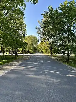 Drinkwater Point Road is a prominent street in Yarmouth, Maine, United States. One of the first streets laid out in what was then coastal North Yarmouth, Province of Massachusetts Bay (when it was centered around the nearby Meetinghouse under the Ledge), it runs for about 0.45 miles (0.72 km) from Gilman Road in the north to Seaborne Drive in the south. Drinkwater Point faces Cousins Island, to which it is connected by the Ellis C. Snodgrass Memorial Bridge, and overlooks inner Casco Bay.
