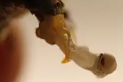 Mating occurs in flight, which accounts for drones needing better vision, which is provided by their large eyes. Should a drone succeed in mating, the first thing that happens is all of the blood in the drone's body rushes to his endophallus, which causes him to lose control over his entire body. His body falls away, leaving a portion of his endophallus attached to the queen which helps guide the next drone in the queen.