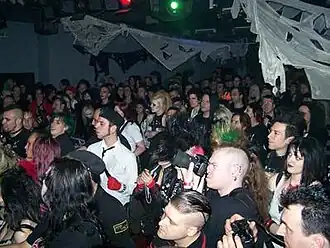 The Drop Dead Festival is the largest DIY festival for "art-damaged" music. It has as many as 65 bands per event, and has been known to attract attendees from over 30 countries. Drop Dead is an electro, post-punk, electropunk, and experimental multiple-day festival, previously held in New York, New York and Europe with additional smaller events having formerly been held in Los Angeles, Philadelphia, Boston, and New Jersey. The festival is also notable for its elaborate stage designs, bazaar of vendors of scene paraphernalia, movie screenings, and a dancefloor featuring underground DJs from around the world.[1]