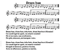 "Drum bun" was sung during the Romanian War of Independence and World War I.[2] Furthermore, the march appeared in Sergiu Nicolaescu's film Pentru patrie[7] and is one of the songs played by the Representative Central Band of the Romanian Army.[8]