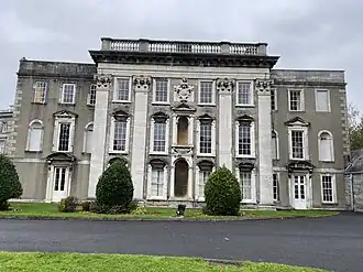 The main house is an eleven-bay three-storey building and appears to have been built sometime after 1710. Edward Lovett Pearce is said to have added the southern face around 1726-27 while Allesandro Gallilei likely also had some input. The later elements include the striking Portland stone features including corinthian pilasters and platband which contrast with other darker calp stone and granite used in construction.[10]