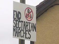 The Drumcree conflict or Drumcree standoff is a dispute over yearly parades in the town of Portadown, Northern Ireland. The town is mainly Protestant and hosts numerous Protestant marches each summer, but has a significant Catholic minority. The Orange Order insists that it should be allowed to march its traditional route to and from Drumcree Church on the Sunday before the Twelfth of July. However, most of this route is through the mainly Catholic/Irish nationalist part of town. The residents, who see the march as sectarian, triumphalist[1] and supremacist, have sought to ban it from their area.[2]