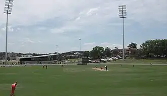 In 1995, the ground hosted an Under 19s cricket test match between Australia, featuring a young Brett Lee, and India[2] while in the 2009 Women's Cricket World Cup, five games were played there.[3] The Sydney Sixers played a match against the SCG XI in 2012–2013, which was the first night cricket match under lights at the ground. Two Ryobi Cup Cricket matches were played at Drummoyne in 2013, including a match between New South Wales and South Australia under lights. Five Domestic One Day Cup cricket matches were scheduled to be played at Drummoyne Oval in October 2014, including three matches involving New South Wales, as well as the elimination final.[4][5]