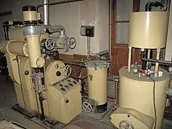 The CO2 dry cleaning process involves charging a sealed chamber which has been loaded with clothes, using gaseous carbon dioxide from a storage vessel to approximately 200 to 300 psi (14 to 21 bar) of pressure. This step in the process is initiated as a precaution to avoid thermal shock to the cleaning chamber. Liquid carbon dioxide is then pumped into the cleaning chamber from a separate storage vessel by a hydraulic or electrically driven pump (which preferably has dual pistons). The pump increases the pressure of the liquid carbon dioxide to approximately 900 to 1,500 psi (62 to 103 bar). A separate sub-cooler reduces the temperature of the carbon dioxide by 2 to 3 °C (3.6 to 5.4 °F) below the boiling point, in an effort to prevent cavitation which could lead to premature degradation of the pump.[17]