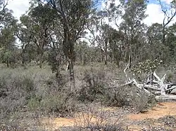 The 17 lots are surrounded by a largely cleared and agricultural landscape.[1] In some cases, road reserves and other linking corridors of uncleared vegetation remain between the woodland islands. Some neighbouring landowners have revegetated areas of previously cleared private land to form additional corridors between these remnants.[7] For certain animals, movement between blocks is necessary on a daily, seasonal or intermittent basis, to provide access to food, shelter, breeding sites and partners.