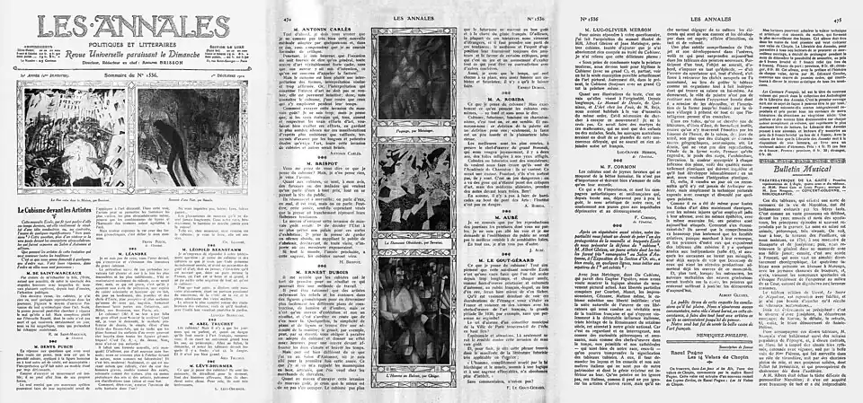- ^ Les Annales politiques et littéraires, Sommaire du n. 1536, 1 December 1912 (A30, T59, N1536), pp. 473 - 475. Gallica, Bibliothèque nationale de France