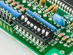 In microelectronics, a dual in-line package (DIP or DIL)[1] is an electronic component package with a rectangular housing and two parallel rows of electrical connecting pins. The package may be through-hole mounted to a printed circuit board (PCB) or inserted in a socket. The dual-inline format was invented by Don Forbes, Rex Rice and Bryant Rogers at Fairchild R&D in 1964,[2] when the restricted number of leads available on circular transistor-style packages became a limitation in the use of integrated circuits.[3] Increasingly complex circuits required more signal and power supply leads (as observed in Rent's rule); eventually microprocessors and similar complex devices required more leads than could be put on a DIP package, leading to development of higher-density chip carriers. Furthermore, square and rectangular packages made it easier to route printed-circuit traces beneath the packages.
