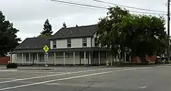 Several historical sites are preserved and located where Dublin Boulevard is crossed by Donlon Way, itself formerly the northernmost segment of the main road to Sunol and Niles Canyon (present-day Foothill Road):