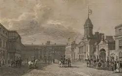 In 1764, English traveller John Bush wrote: "The Castle, as it is called from its having been the situation of one, I suppose, of which at present there are very few remains, is the residence of the lord lieutenant when in Ireland, but has very little of grandeur in its external appearance besides the large square court-yard, which it encloses. But the rooms, some of them, are large and elegant".[13]