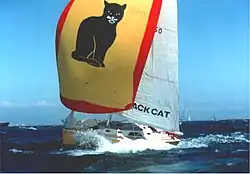 - ^ Note: the spinnaker's black cat illustration is the former logo (now sadly "updated") of Dix's sponsor, the South African producer of "Black Cat" peanut butter.