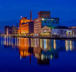 The basis for this model of development in the Ruhr district was delivered in 1994 by the British architect Norman Foster. Since then, the Inner Harbor has transformed itself into a district combining employment, housing, culture and water-based leisure activities. Today, the Inner Harbour is both industrial heritage and a main stop on the Route der Industriekultur.[1]