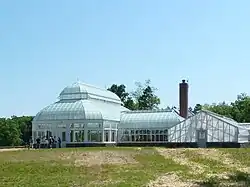 Duke Farms is a center of the Doris Duke Foundation. A decision was made to renovate the estate as "a model of environmental stewardship in the 21st Century and (to) inspire visitors to become informed stewards of the land."[10] While reorganizing the estate, little was accessible to the public. In 2008, DF created some controversy when it permanently closed Duke Gardens, demolishing the indoor display gardens that had been created by Doris Duke.[7] Over the years, the DF created new indoor and outdoor display gardens that are eco-friendly, use native plants, and are wheelchair accessible. In the process of rehabilitation, numerous invasive foreign plants were removed, including Norwegian maple and Asian Ailanthus, and replaced by native species. The property has a number of notable trees, including four of the ten oldest trees of New Jersey,[11] and two champion trees, a Northern Red Oak and an Amur Cork Tree.[12] On May 19, 2012, Duke Farms opened to the public. After a $45-million renovation, Duke Farms now serves as an environmental center that "aims to inspire people to become guardians of the planet, and to be a free, inclusive, accessible resource for helping everyone find their place in nature."[13] Duke Farms' restored habitats now include 30 endangered species and 230 varieties of birds, among which are the great blue heron and the bald eagle.[4][14]