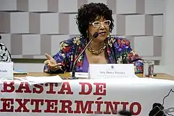 Dulce Pereira (born 1954) is a Brazilian adjunct professor at the Federal University of Ouro Preto (UFOP). Among other activities she has been the president of the Palmares Cultural Foundation and, as a Brazilian diplomat, president of the Community of Portuguese Language Countries. As of 2024 she was employed by the Brazilian Ministry of Women. Pereira is a long-time member of the Workers' Party (Partido dos Trabalhadores - PT). [1]
