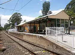 The station complex includes the reconstructed type 8 timber station building, metal passenger waiting area and concrete pedestrian crossing, all dating from 2007, and the original brick-faced platform, dating from 1896.[3]
