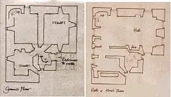 In 1928, amongst the rubble, a cross was found carved on a slab. The stone had a chamfered edge and the cross bore an unusual lozenge-shape, cut out at the centre. It may have been the consecration stone of the chapel and was dated as possibly 12th century. The whereabouts of this cross is at present unknown.[43]