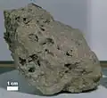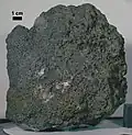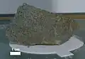 | 15476 | - | basalt | Slabby, subangular, porphyritic basalt with brown pyroxene phenocrysts to 15 mm long in a slightly vuggy groundmass of plagioclase, and brown and green mafic silicates |