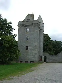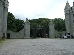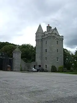 The Tower lodges and gates at Loch of Skene are also category A listed.[20] Several other structures within the estate are designated category B including the lodges.[21] The formal gardens are sited to the west and south of the mansion and feature two large terraces designed by Aston Webb in the early 20th-century.[8]