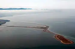 Dungeness Spit is a sand spit jutting out approximately 5 miles (8 km)[1] from the northern edge of the Olympic Peninsula in northeastern Clallam County, Washington into the Strait of Juan de Fuca. It is the longest natural sand spit in the United States.[2][3] The spit is growing in length by about 15 feet (4.6 m) per year.[1][4] The body of water it encloses is called Dungeness Bay.[5]