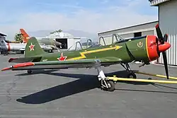 Aircraft were equipped with dual cockpits for filming in flight.[83] A Yakovlev Yak-52TW[67][84] was modified to resemble a Supermarine Spitfire,[18][85] and two Supermarine Spitfire Mark IAs, a Spitfire Mark VB, and a Hispano Buchon painted to look like a Messerschmitt Bf 109E, were also used for the combat scenes, flying to Urk from Lelystad Airport. Large-scale radio-controlled model aircraft were filmed crashing into the English Channel.[24][81] The real Spitfires were provided by the Imperial War Museum Duxford,[19] and owner Dan Friedkin piloted the one that was filmed landing on the beach in Dunkirk.[86] These takes had to be done within forty-five minutes, before the tide came back in.[18] IMAX cameras were attached to the fighter planes using specially made snorkel and periscope lenses—in the back and the front[18][24][35]—and large-scale mockups were submerged with cable rigs for a crash scene.[35] Scroggins Aviation and Gateguards UK performed period aviation reconstruction.[87] Aerospatiale Ecureuil G-WHST, with IMAX cameras front, and a Piper Aerostar enabled filming from the air, also with IMAX cameras front and rear. Dogfights over the Channel were shot by an aerial unit based at Lee-on-Solent Airfield and one at Lelystad Airport in the Netherlands.[18] Hardy and Lowden spent the final stages of the shooting schedule on a cliffside in Palos Verdes, inside purpose-built cockpit gimbals, with limited contact with the rest of the cast and crew.[18][19][35][88] Dunkirk wrapped on 2 September 2016, after sixty-eight days.[18]