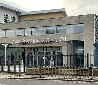 Dunraven School is a 4–18 mixed, all-through school and sixth form with academy status in Streatham, Greater London, England.[3] Its buildings are based over two sites that were previously used as a teacher training college (formerly known as Upper School, now the South Site) and a primary school (formerly known as Lower School, now the North Site and occupied by the sixth form).[4][5]