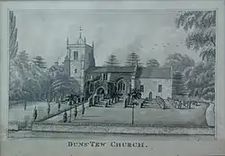Before the Norman conquest of England, Leofwine of Barton held the manor of Duns Tew along with those of Dunthrop, Little Tew and Westcott Barton.[2] The Domesday Book of 1086 records four estates in the parish, of which the two largest belonged to Robert D'Oyly and Robert de Stafford.[3] In addition, Gilbert de Magminot, Bishop of Lisieux held an estate of three hides and Odo, Bishop of Bayeux and half-brother of William I held an estate of one hide.[3] The present manor house contains 17th-century remnants and a wing added in the 19th century, but the main part of the present house is 18th-century.[4] The house has a 17th-century dovecote.[4] Priory Court, a 19th-century house east of the church, used to be the vicarage.[5]