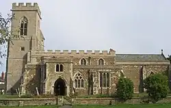 Central to the village is the Church of St. Mary Magdalene in the diocese of St Albans. The earliest parts date from the 14th-century and consist of a chancel, nave of four bays, aisles and porch. The church steeple collapsed in 1660. The 60 feet (18 m) tall limestone ashlar embattled western tower dates from 1861 and is illuminated at night. The church's five bells were hung in 1887 in commemoration of the Golden Jubilee of Queen Victoria. The south porch was partially rebuilt and the chancel restored in 1861.[11][12]