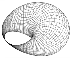 An elliptic cyclide can be represented parametrically by the following formulas (see section Cyclide as channel surface):