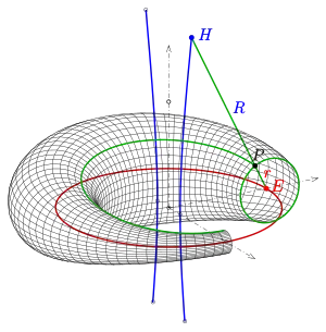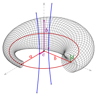 In case of a torus () the hyperbola degenerates into the axis of the torus.