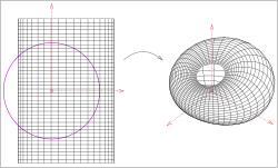 A parabolic cyclide can be represented by the following parametric representation (see section Cyclide as channel surface):