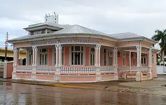 Duran Esmoris Residencia is a building in Mayagüez, Puerto Rico, situated on less than an acre of land on Mendez Vigo Street. Its foundation is concrete, its roof metal and zinc. Designed by architect Luis Fernando Nieva, the building is generally rectangular in shape. Built in 1921, the people who lived in the residence were prominent members of the municipality of Mayagüez. Columns with ornate carvings separate the main rooms. The ground level is 3 feet off the ground, the veranda circles around the building.