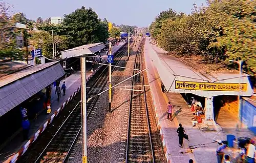 Durganagar is a Kolkata Suburban Railway station in Durganagar. Its code is DGNR. It serves Durganagar, Manikpur, Badra and surrounding areas. The station consists of two platforms. The platforms are not very well sheltered.[1]