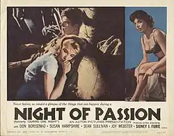 During One Night (also known as Night of Passion) is a 1961 British drama film directed and written by Sidney J. Furie and starring Don Borisenko and Susan Hampshire.[2] It was Walton Studios' last production.