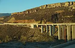 There are 17 viaducts in the area from Reps to Thirrë. The use of a hydro-powered electricity grid instead of diesel generators has helped in reducing the carbon footprint of the project. As a result, CO2 emissions have dropped by 613,000 pounds (278,000 kg) each month. The above segment as opposed to the other ones is of a higher quality both for security and construction parameters.