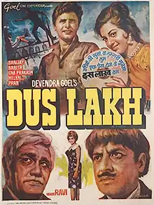 Dus Lakh (English: Ten Lakhs or One Million) is a 1966 Indian Hindi-language comedy film.[1] It was produced and directed by Devendra Goel. Music was composed by Ravi. The star cast included Sanjay Khan, Babita, Helen, Pran, Om Prakash, Manorama, Ramesh Deo, Seema Deo, and Neetu Singh. Babita made her acting debut through this film.