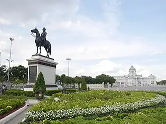 Dusit Palace (Thai: พระราชวังดุสิต, RTGS: Phra Ratcha Wang Dusit) is a compound of royal residences in Bangkok, Thailand. Constructed over a large area north of Rattanakosin Island between 1897 and 1901 by King Chulalongkorn (Rama V). The palace, originally called Wang Suan Dusit or 'Dusit Garden Palace' (วังสวนดุสิต), eventually became the primary (but not official) place of residence of the King of Thailand, including King Chulalongkorn (Rama V), King Vajiravudh (Rama VI), King Prajadhipok (Rama VII), King Bhumibol Adulyadej (Rama IX) and King Vajiralongkorn (Rama X). The palace covers an area of over 64,749 square metres (696,950 sq ft) and is dotted between gardens and lawns with 13 different royal residences. Dusit Palace is bordered by Ratchwithi Road in the north, Sri Ayutthaya Road in the south, Ratchasima Road in the west and U-Thong Nai Road on the east.