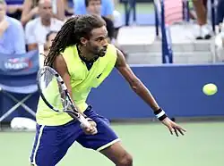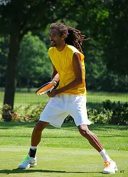 Dustin Brown (born 8 December 1984)[1] is a German-Jamaican former professional tennis player who rose to fame after beating Rafael Nadal at the Halle Open in 2014 and at Wimbledon in 2015. He was known for his technique, speed, and unorthodox playing style, often entertaining the crowd with trick shots.[2]