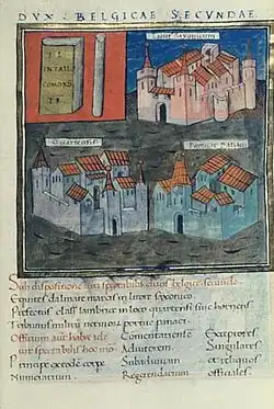 The Dux had originally more units under his command. Arnold Hugh Martin Jones identified the origin of some units as being from the Gallic army. They originated from Belgica II. Their names are the same as the well-known cities of this province: