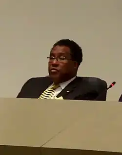 His wife, Barbara, had previously served on the city council and is a former member of the Texas House of Representatives.[9] In 2011, Caraway became acting mayor after Mayor Tom Leppert resigned to campaign for the U.S. Senate.[7][10][11][12][13][14] Caraway's first meeting with the Dallas City Council was on March 2, 2011. He served as interim mayor until June 26, 2011,[15] when he was succeeded by elected mayor Mike Rawlings.[16][17]