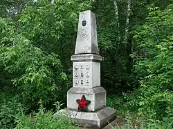 A mountain pass in the area later was named "Dyatlov Pass" in memory of the group, despite the incident occurring about 1,700 metres (5,600 ft) away on the eastern slope of Kholat Syakhl.[2] A prominent rock outcrop in the area now serves as a memorial to the group. It is about 500 metres (1,600 ft) to the east-southeast of the actual site of the final camp.