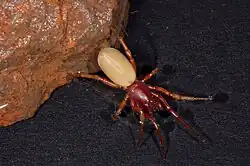 The Dysderidae, also known as woodlouse hunters, sowbug-eating spiders, and cell spiders, are a family of araneomorph spiders first described by Carl Ludwig Koch in 1837.[1] They are found primarily in Eurasia, extending into North Africa with very few species occurring in South America. Dysdera crocata is introduced into many regions of the world.[2]