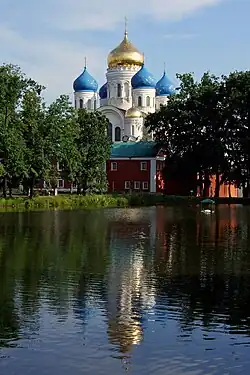 The settlement has grown around the Ugresha Monastery which stands at the heart of the modern town. The monastery has been one of the richest in Russia since the 17th century when Tsar Alexis and Patriarch Nikon built their palaces on the grounds. It was greatly expanded in the 19th century, under the supervision of St. Pimen of Ugreshi. One of the new churches in the monastery is dedicated to St. Pimen. The walled area of the monastery has several picturesque ponds.