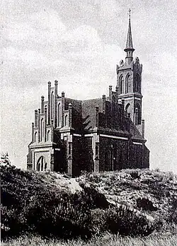 The territory became part of the emerging Polish state under its first ruler Mieszko I around 967[4] and the battle at Julin Bridge took place nearby in 1170. The first mentioning of the village in chronicles dates back to 1243.[5] It remained a small fishing village in a sparsely populated area. This changed when the village came under Prussian rule and more people started to settle in the village. Due to its seaside location the village slowly transformed from a fishing village into a holiday resort.[5] At the end of the 19th century, salt springs were discovered, and the first sanatorium was established.[5] As a result the town became a popular spa town in the German Empire. In the 1930s, military barracks were built.[5] During World War II, in June 1944, American army conducted air raids on the Nazi German garrison in the village.[5] The historic church was destroyed in the final stages of the war. Polish troops entered in the city May 1945 and the German population was expelled or fled.[5] In accordance with the Potsdam Agreement the city became part of the Polish People's Republic.