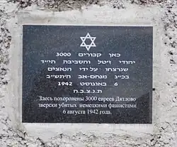 ![]() Commemorative plaque to 3,000 victims of the Dzyatlava massacres. | |