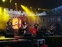 E!E is a Czech punk rock band from Příbram, founded in 1987.[1] The band consists of Bořivoj Řehoř (vocals), Petr Bakalerov (lead guitar and vocals), Petr Stawarz (guitar), Petr Mottl (bass), and Roman Vojtíšek (drums).