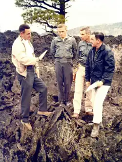 An agreement was reached between Jackson and Wally Schirra, who was in charge of astronaut training, for coursework to commence when the NASA Astronaut Group 3 arrived in February 1964. This provided Jackson with several months in which to develop a comprehensive training syllabus for the Project Apollo astronauts.[7] He was warned that they were ambivalent if not hostile to training in geology, as they were preoccupied with other matters, but Jackson managed to win them over, communicating with them about geology in a way that they found both interesting and engaging. He was less successful in his relations with the NASA training staff, and left after only one year.[1][2]