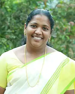 She belongs to the Communist Party of India.[1][5] She is one of the State Council members of Communist Party of India.[4] She was born in Upputhara on 13 January 1972. She is the daughter of George and Annamma. She is working as a teacher as well as a political worker.[4] She is an Executive Member of National Federation of Indian Women. In the year 1995 she was elected as the Block Panchayath President of Azhutha and she was holding the post until 2000 and she also served as a District Panchayath Member from September 2005 to April 2006.[4] Her participation in protest of Mullapperiyar Dam issue was highlighted by all the media.[6][7]