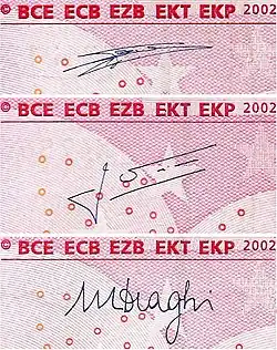 Although Axel Weber was tipped as one of the possible successors,[9] he resigned from the ECB in protest at the bail out policies. Mario Draghi was chosen to become the next President of the ECB on 24 June 2011.[10] Draghi was president from 1 November 2011 until 31 October 2019 (succeeded by Christine Lagarde).