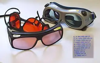 {{cite book}}: CS1 maint: location (link) - ^ "DGUV Information 203-042 - Auswahl und Benutzung von Laser-Schutzbrillen, Laser-Justierbrillen und Laser-Schutzabschirmungen | Schriften".